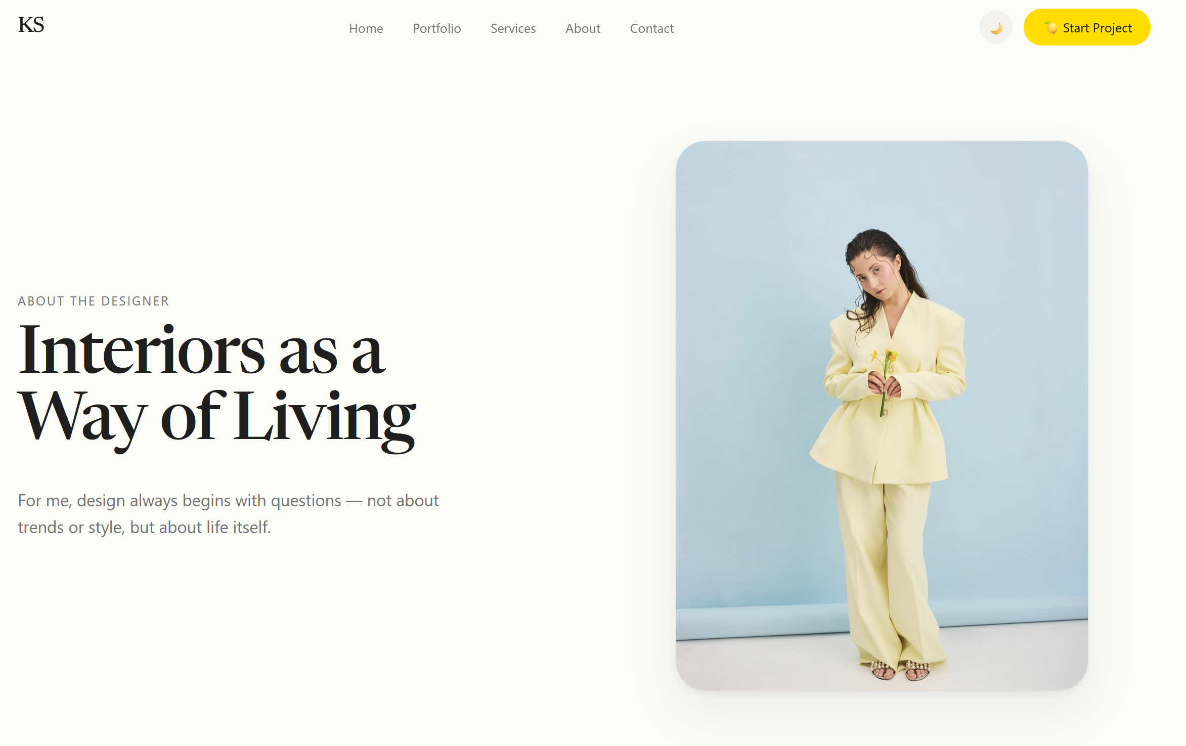 Сайт стал не просто витриной, а продолжением философии дизайнера.